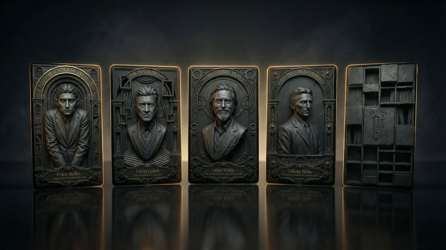 Oz translates archetypes and myth into form. Each deck is designed as an art-directed object with intention, grounded in symbol, built to last. This is a visual language designed for contemplation, collectability, and long-term presence.